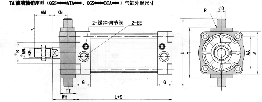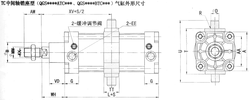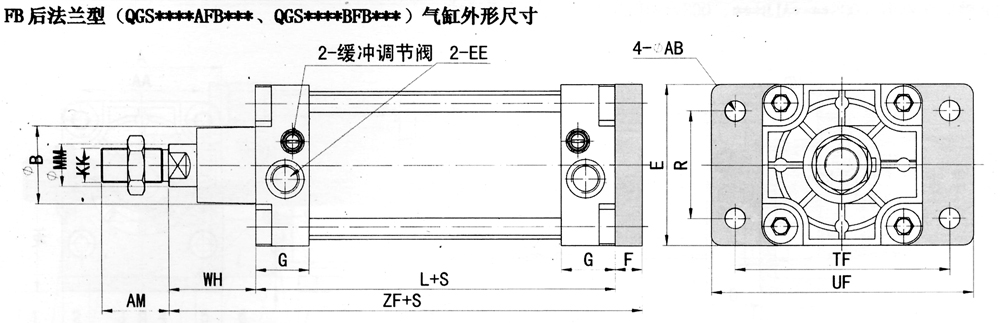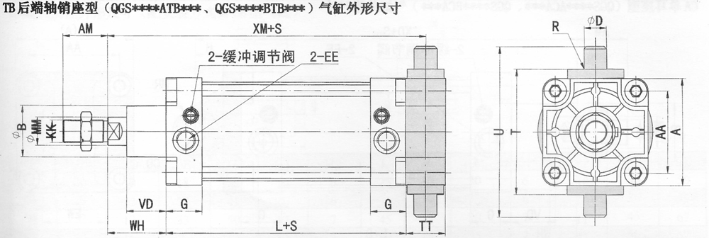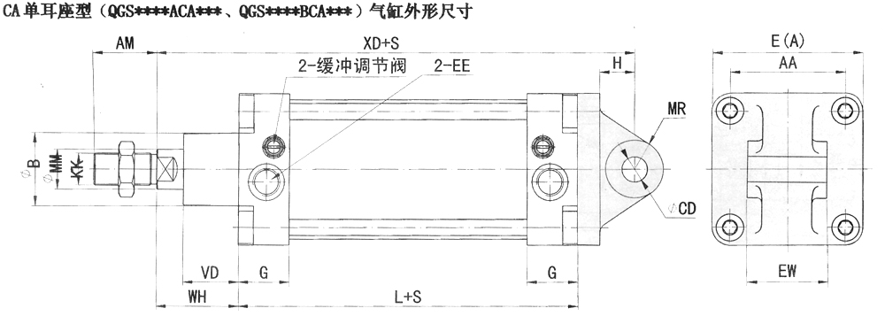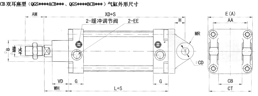 QGS系列普通雙作用汽缸外形尺寸: